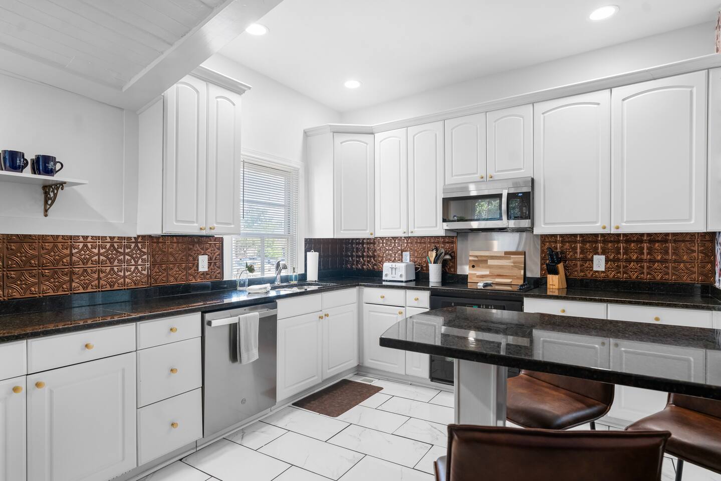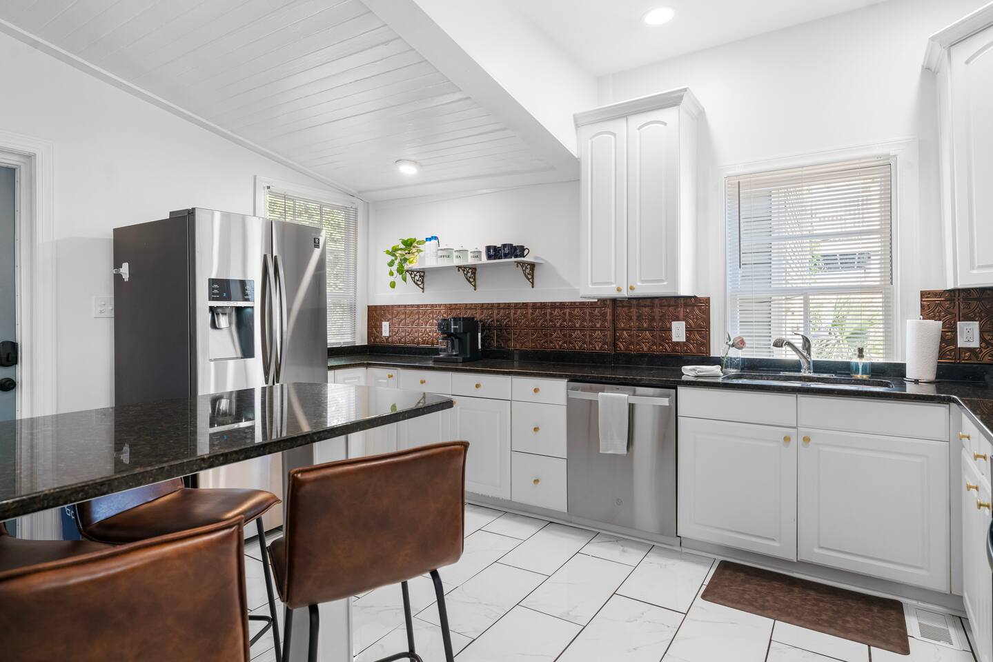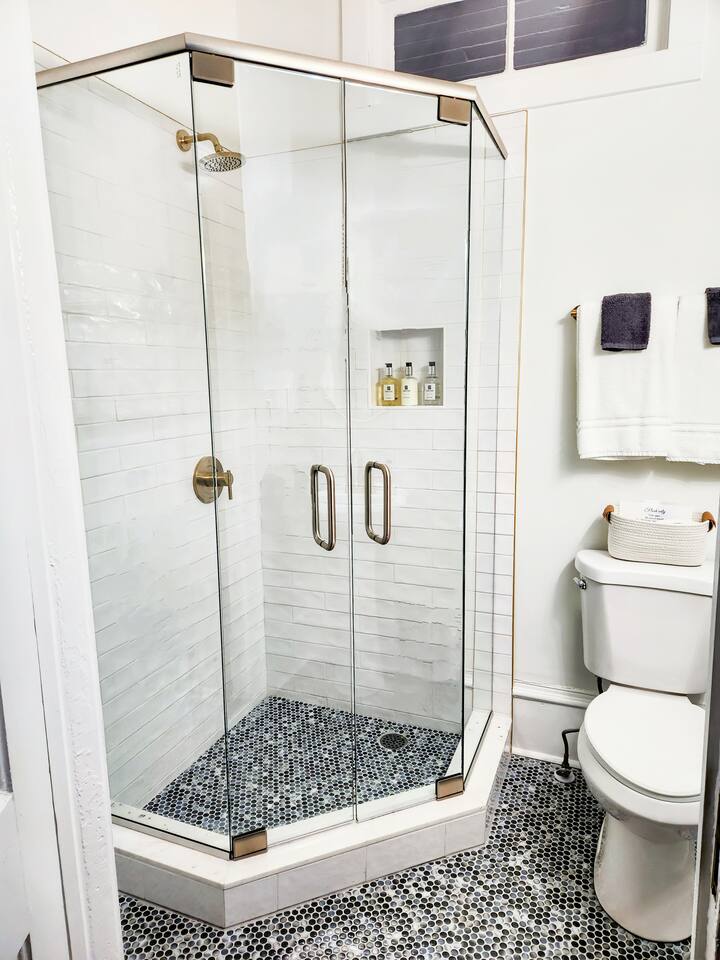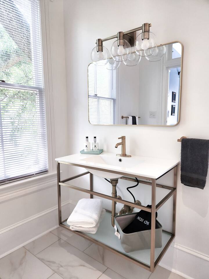 Guests will have full access to the entire home and will be provided keyless entry codes on the day their reservation starts. There are stairs to access the home from both the front and back of the home. Only one bedroom is located on the 1st floor with a full bath down the hall. Two other bedrooms are located on the 2nd floor and the stairs are steep due to the soaring 11 foot ceilings. Please keep this in mind while booking.