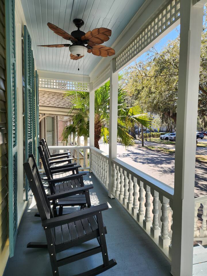 Steps from iconic Forsyth Park, our elegantly renovated 3BR/3BA home blends historic Southern charm with quiet luxury. Relax on the porch rocking chairs or enjoy spacious interiors with modern amenities. Private parking and a fully equipped kitchen make your stay effortless. Easy walk to top restaurants, shops & historic sites. ✨Highlights: ✅3 BR/3BA - everyone has their own space ✅2 Private parking spaces ✅Porch with rocking chairs & park views ✅Spacious living room, fully equipped kitchen