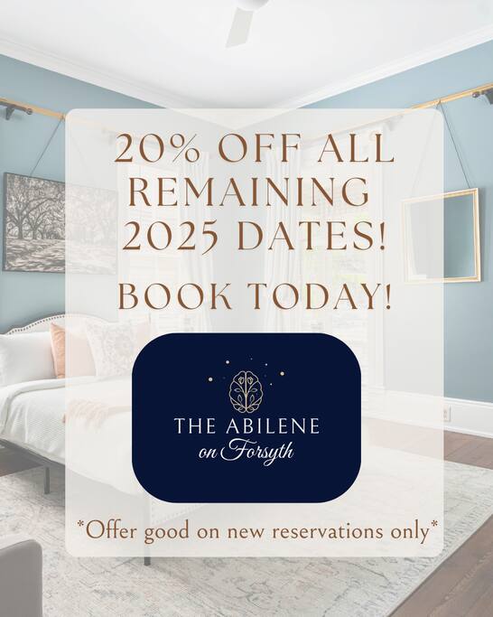 SVR # 03025 The Abilene on Forsyth - Southern Charm Redefined 20% THROUGH 12/31/25. Good for new reservations made after 10/27/25. Discount not to be combined with other offers. Simply request to book your dates & special discount will be sent to you. Located in the heart of historic Savannah, Georgia, this beautifully designed, renovated vacation home, built in 1891, blends timeless beauty with everyday ease. It is quintessentially, southern charm redefined. ⭐⭐⭐⭐⭐"I don't usually take the time to write an actual review of my stays but this place was amazing. The house was so clean and charming. Location was perfect for anyone but especially with kids being so close to the park. Host was super responsive. We will be staying again! ~Aleesha, March 2025 “Stayed with 5 other 40ish women for girls weekend. Everything about this rental was perfect… All my friends agreed we would stay here again and this was one of our best rental experiences.” – Jennie, Jan 2025 “We five old friends gathered from various places in the country and the house was perfect. There was lots of room… and the kitchen was roomy and enabled us to cook meals and have lots of options for snacks.” – Claire, Jun 2025 “The Abilene on Forsyth was spectacular. There were four of us ladies and we were all extremely happy with the accommodations… We enjoyed sitting on the rocking chairs on the front porch and watching the activities at Forsyth Park.” – Denise, Apr 2025 “All 4 of us sisters agreed that the detailing that went into upgrading this house is topnotch! My sisters and I had a wonderful trip… The highlights were our walks around Forsyth Park, eating at Collins Quarter, exploring via the trolley and eating at oh so many good restaurants!” – Heidi, Jan 2025 🛋️ Relaxing Living Spaces Unwind in the cozy living room with a plush sofa, loveseat, and 50” Roku Smart TV (streaming only). Gather for a movie night, board game session, or browse our Savannah guidebooks to plan your next adventure. 🍳 Fully Equipped Kitchen & Dining The kitchen features everything you need: full appliances, Keurig Duo (pods & carafe), basic spices, and kid-friendly dinnerware. Enjoy shared meals in the sunny dining area for 6, or grab coffee and tea at the breakfast counter (complimentary pods, creamers, and teas included). 🛏️ Spacious Bedrooms & Bathrooms Enjoy 3 private bedrooms with ensuite or nearby full bathrooms, plush beds, Roku TVs, and premium linens. Main Floor Bedroom: King bed + twin daybed; full bath just down the hall with walk-in shower. 2nd Floor Primary Suite: King bed, ensuite bath with dual sinks & tub/shower combo. 3rd Bedroom: Queen bed + twin daybed, private balcony with Forsyth Park views, ensuite bath with shower. All bathrooms include 100% natural, organic bath products and hotel-quality towels. 🌿 Outdoor Charm with Porch Views Start your mornings with coffee on the front porch overlooking Forsyth Park. Rocking chairs, shade from live oaks, and soft breezes create a quintessential Savannah experience guests rave about. ✅ Guest Amenities ✔️ 2 off-street parking spaces ✔️ Free high-speed Wi-Fi (up to 500 Mbps) ✔️ Full laundry room (washer/dryer, iron) ✔️ Family-friendly (high chair, Pack & Play, games) ✔️ Eco-conscious cleaning with non-toxic products 📍 Walk to Savannah’s Best Attractions Located in the Southern Historic District, steps from: Forsyth Park Fountain (5 min) Mercer-Williams House (12 min) Cathedral of St. John the Baptist (15 min) Broughton Street shops & Leopold’s Ice Cream (25 min) River Street & Bay Street (30 min) Or hop on the free Dot Trolley just 2 blocks away for easy access to even more! 🎟️ Bonus Perks All guests enjoy access to local discounts at nearby attractions and experiences. Details and coupons are provided in the home. ❇️Guest access❇️ * You'll have exclusive access to the entire property, including all appliances and amenities - keyless entry codes will be provided on the day the reservation begins. *Stairs are required for entry at both the front and back. One bedroom is on the 1st floor with a full bath nearby, while two more are on the 2nd floor, accessed by steep stairs due to 11-foot ceilings. ❇️Additional rules ❇️ Make your stay a stress-free experience by following our house rules: ✓ Check-in time is at 4PM-10PM and check-out time is before 10AM to allow us to prepare for the next guests. ✓ Parties or events are not permitted on the property, and noise levels must be kept down after 10PM until 8AM to maintain a peaceful environment. Penalties may apply in the case of any damage or mess caused during your stay. ✓ To maintain a harmonious environment for all our guests, we have a strict ‘no pets’ policy. ✓ To ensure a healthy and pleasant stay for everyone, we maintain a strict no-smoking policy. This policy encompasses traditional smoking, vaping, and the use of electronic cigarettes. Please refer to the 'Additional Rules' section for all house rules. This will help avoid any possible misunderstandings. ❇️PLEASE NOTE❇️: we are located on a main street in a busy urban city. Because of our prime location, you WILL hear street noise from pedestrians and vehicles. Also, being across from the tennis courts, you will also hear noise from the matches taking place as well as practice sessions. But, they are fun to watch!! Savannah’s sub-tropical climate means hot, humid summers and occasional bugs. While The Abilene is regularly treated by pest control, we can’t eliminate all these elements. Please consider these factors, as we do not offer refunds based on these conditions.