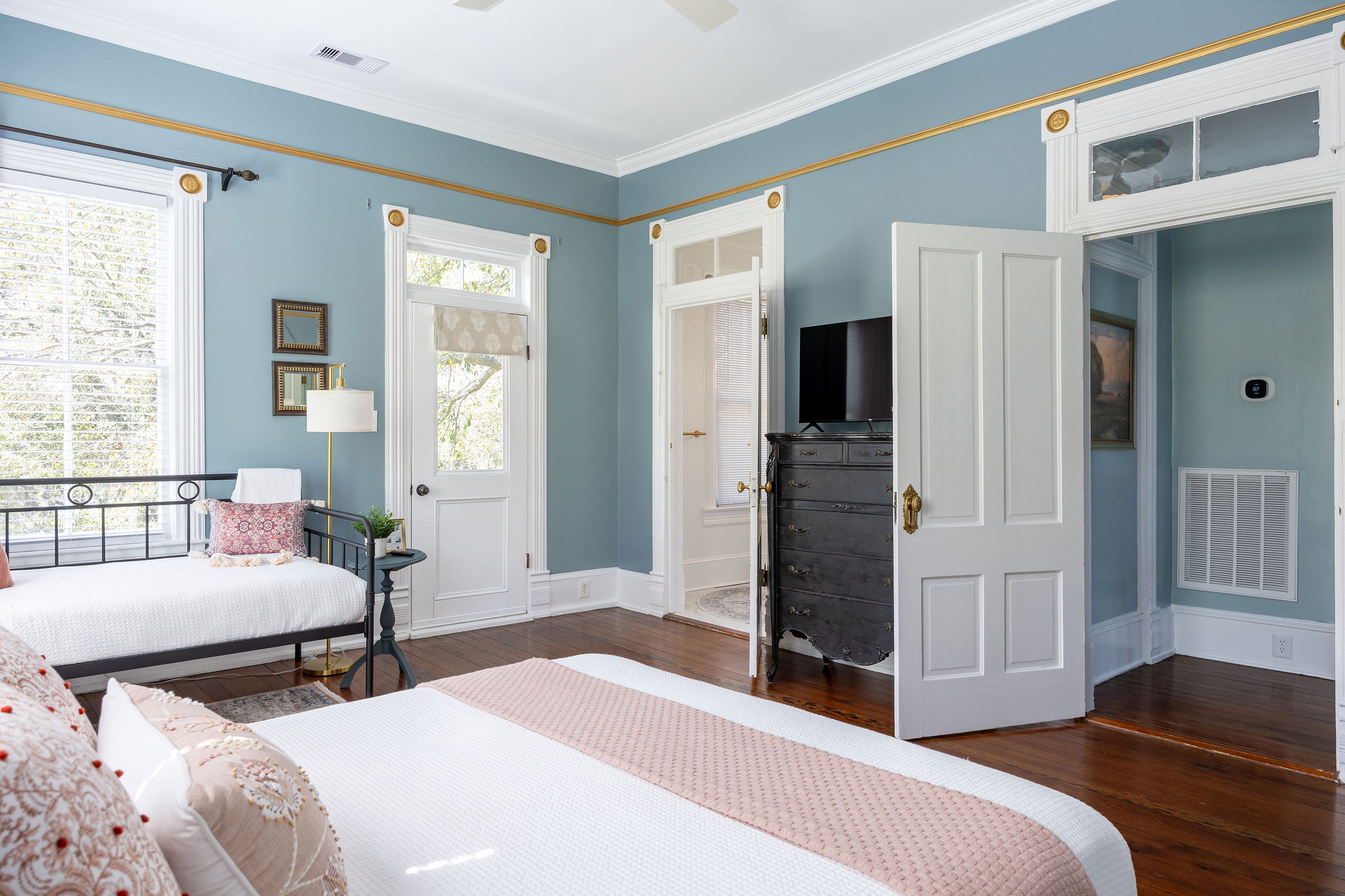 Savannah STVR License # 03025 The Abilene on Forsyth - Southern Charm Redefined Located in the heart of historic Savannah, Georgia, this beautifully designed, renovated vacation home, built in 1891, blends timeless beauty with everyday ease. It is quintessentially, southern charm redefined. ⭐⭐⭐⭐⭐~ 5 Star Stays! "10 out of 5 stars. Beautiful home, walkable location, gracious host. Stacia had a decorated Christmas tree in the house with little presents for all of us. One of the best hosts and most beautiful Airbnbs I have ever stayed in. Highly recommend." ~Sarah, December 2025 “What a perfect place to stay for all of us. We had plenty of room with 3 couples, excellent bathrooms and the beds were very comfortable, and absolutely loved having coffee on the front porch. Perfect location and everything was walkable. ~Robert, October 2025 “Absolutely beautiful home. The bedrooms are heavenly and so comfortable. The high ceilings and decor are beautiful. We loved everything about this house and look forward to visiting again in the future. The whole experience working with the host was top notch!" 🛋️ Relaxing Living Spaces Unwind in the cozy living room with a plush sofa, loveseat, and 50” Roku Smart TV (streaming only). Gather for a movie night, board game session, or browse our Savannah guidebooks to plan your next adventure. 🍳 Fully Equipped Kitchen & Dining The kitchen features everything you need: full appliances, Keurig Duo (pods & carafe), basic spices, and kid-friendly dinnerware. Enjoy shared meals in the sunny dining area for 6, or grab coffee and tea at the breakfast counter (complimentary pods, creamers, and teas included). 🛏️ Spacious Bedrooms & Bathrooms Enjoy 3 private bedrooms with ensuite or nearby full bathrooms, plush beds, Roku TVs, and premium linens. Main Floor Bedroom: King bed + twin daybed; full bath just down the hall with walk-in shower. 2nd Floor Primary Suite: King bed, ensuite bath with dual sinks & tub/shower combo. 3rd Bedroom: Queen bed + twin daybed, private balcony with Forsyth Park views, ensuite bath with shower. All bathrooms include 100% natural, organic bath products and hotel-quality towels. 🌿 Outdoor Charm with Porch Views Start your mornings with coffee on the front porch overlooking Forsyth Park. Rocking chairs, shade from live oaks, and soft breezes create a quintessential Savannah experience guests rave about. ✅ Guest Amenities ✔️ 2 off-street parking spaces ✔️ Free high-speed Wi-Fi (up to 500 Mbps) ✔️ Full laundry room (washer/dryer, iron) ✔️ Family-friendly (high chair, Pack & Play, baby gate, games) ✔️ Eco-conscious cleaning with non-toxic products 📍 Walk to Savannah’s Best Attractions Located in the Southern Historic District, steps from: Forsyth Park Fountain (5 min) Mercer-Williams House (12 min) Cathedral of St. John the Baptist (15 min) Broughton Street shops & Leopold’s Ice Cream (25 min) River Street & Bay Street (30 min) Or hop on the free Dot Trolley just 2 blocks away for easy access to even more! 🎟️ Bonus Perks All guests enjoy access to local discounts at nearby attractions and experiences. Details and coupons are provided in the home. ❇️Guest access❇️ * You'll have exclusive access to the entire property, including all appliances and amenities - keyless entry codes will be provided on the day the reservation begins. *Stairs are required for entry at both the front and back. One bedroom is on the 1st floor with a full bath nearby, while two more are on the 2nd floor, accessed by steep stairs due to 11-foot ceilings. ❇️Additional rules ❇️ Make your stay a stress-free experience by following our house rules: ✓ Check-in time is at 4PM-10PM and check-out time is before 10AM to allow us to prepare for the next guests. ✓ Parties or events are not permitted on the property, and noise levels must be kept down after 10PM until 8AM to maintain a peaceful environment. Penalties may apply in the case of any damage or mess caused during your stay. ✓ To maintain a harmonious environment for all our guests, we have a strict ‘no pets’ policy. ✓ To ensure a healthy and pleasant stay for everyone, we maintain a strict no-smoking policy. This policy encompasses traditional smoking, vaping, and the use of electronic cigarettes. Please refer to the 'Additional Rules' section for all house rules. This will help avoid any possible misunderstandings. ❇️PLEASE NOTE❇️: we are located on a main street in a busy urban city. Because of our prime location, you WILL hear street noise from pedestrians and vehicles. Also, being across from the tennis courts, you will also hear noise from the matches taking place as well as practice sessions. But, they are fun to watch!! Savannah’s sub-tropical climate means hot, humid summers and occasional bugs. While The Abilene is regularly treated by pest control, we can’t eliminate all these elements. Please consider these factors, as we do not offer refunds based on these conditions.