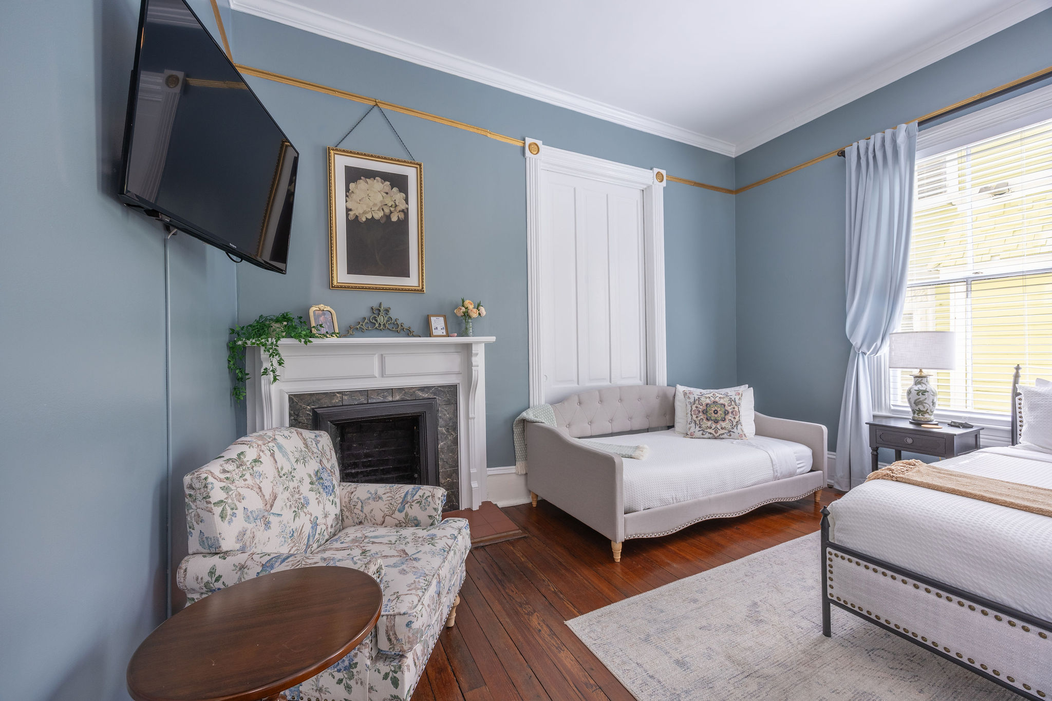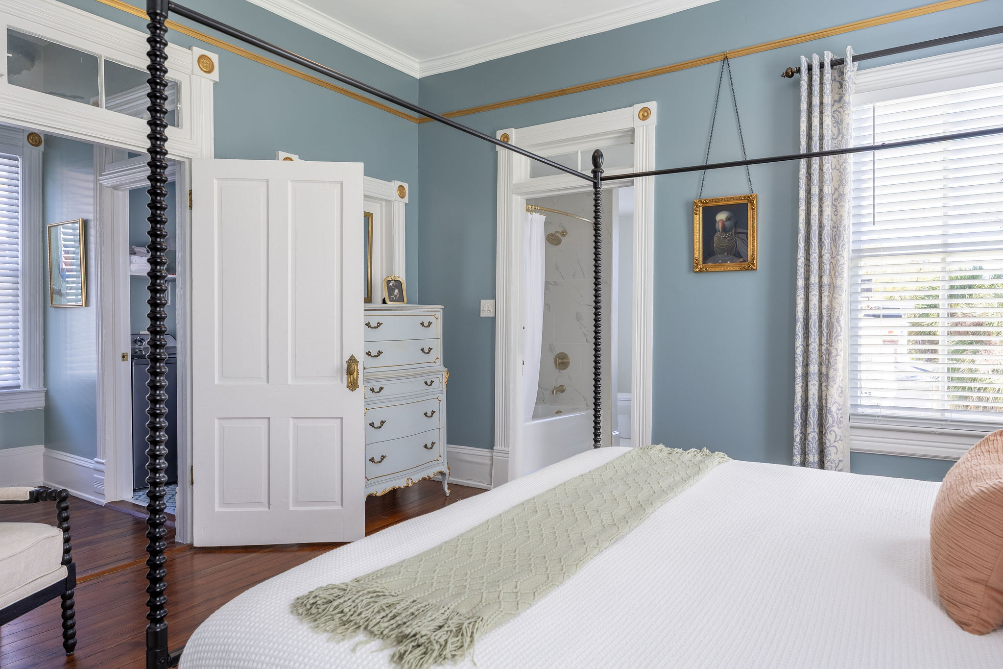 Explore historic Savannah's rich history, stunning squares, and warm Southern hospitality in our delightful getaway. Relax on the porch rocking chairs or enjoy spacious interiors with modern amenities. Private parking and a fully equipped kitchen make your stay effortless. Easy walk to top restaurants, shops & historic sites. ✨Highlights: ✅3 BR/3BA - everyone has their own space ✅Renovated, modern bathrooms ✅Porch with rocking chairs & park views ✅Spacious living room, fully equipped kitchen